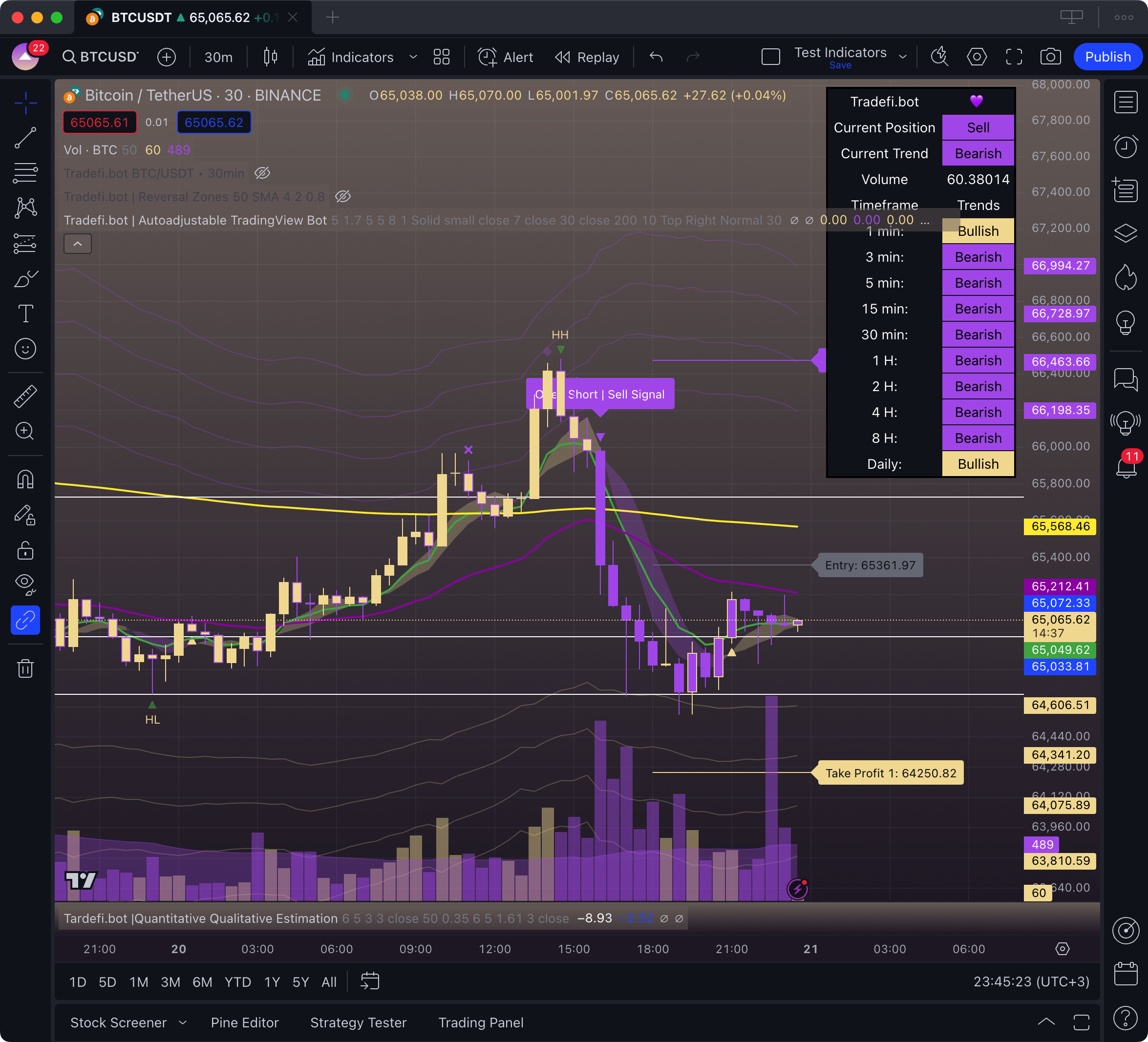The Tradefi.bot indicator for TradingView is a technical analysis tool designed to facilitate decision-making in trading through a combination of buy/sell signals, trend analysis, and other key metrics. This indicator is suitable for a wide range of trading styles, from intraday trading to long-term strategies. Let's explore the components of the indicator and how each contributes to its overall effectiveness.