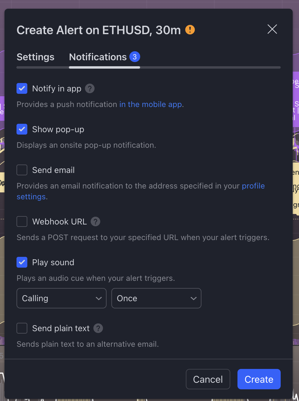 * **Notify in app**: Get push notifications in the TradingView mobile app.