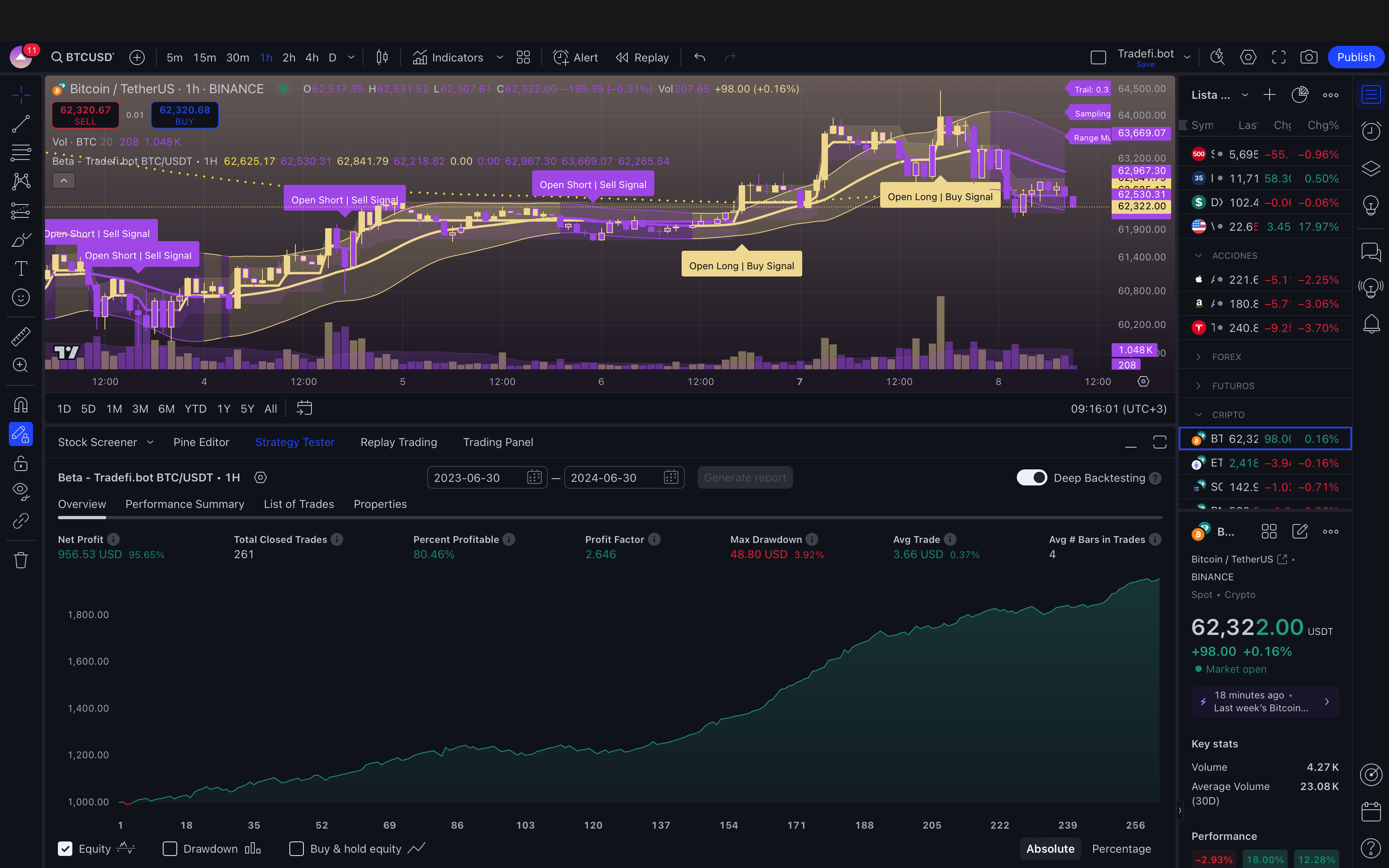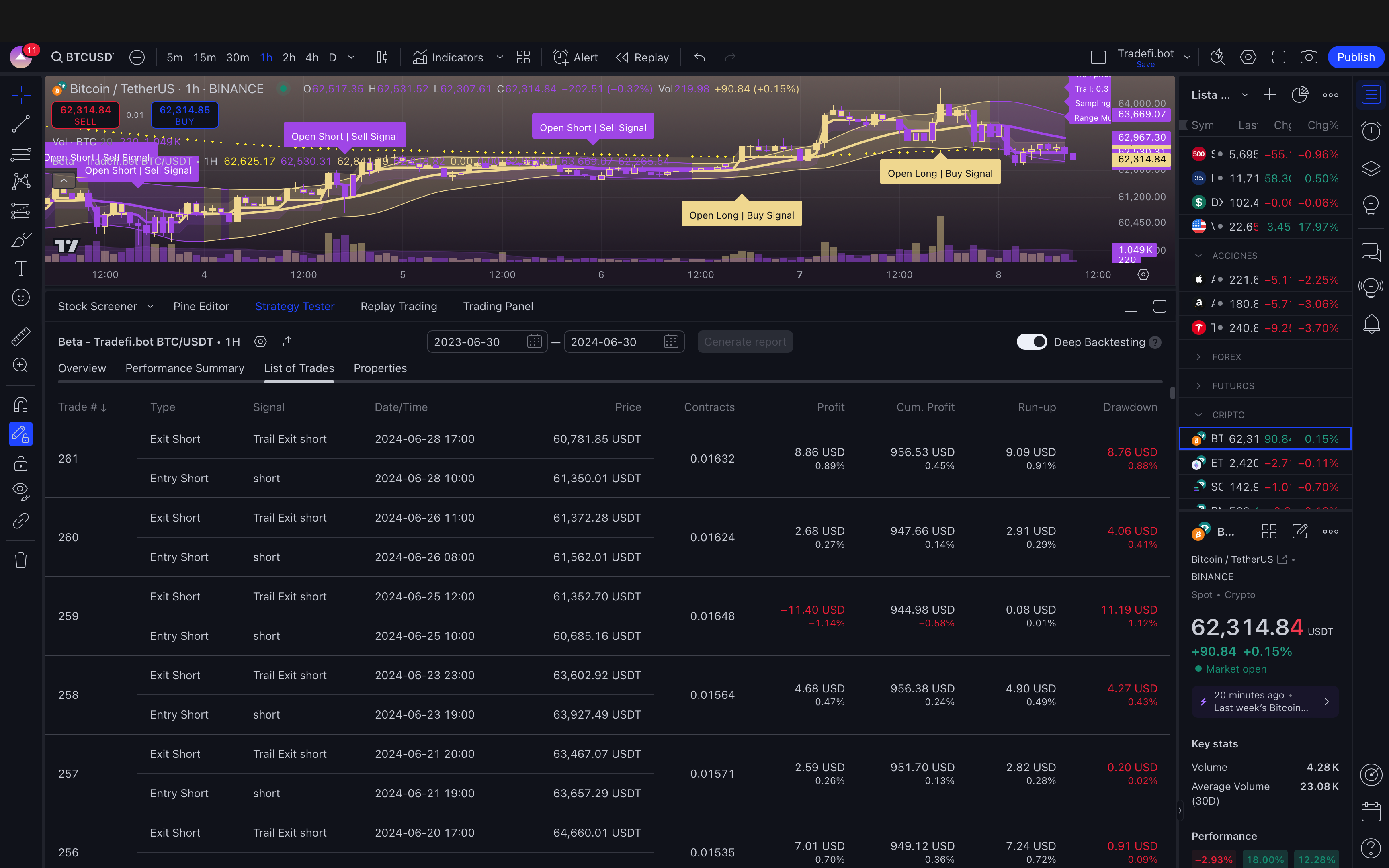 This section provides an in-depth analysis of the performance of the **BTC/USDT Decentralized AI Trading Bot** on the **1h timeframe**. Using historical data and advanced algorithms, this backtest demonstrates how the bot navigates market conditions, identifying optimal buy and sell signals. The results offer valuable insights into the bot’s ability to capture trends and manage risk over longer timeframes.