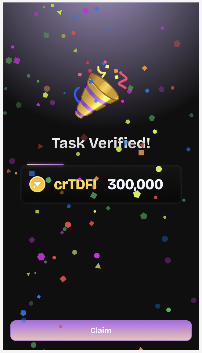 **3. Stay Consistent:** Consistently completing tasks ensures steady growth in crTDFI and access to higher-value rewards.